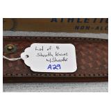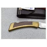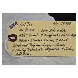 10R. Smith & Wesson – Mod. 29-3 “Elmer Keith Commemorative” “1899-1984” – 44 Mag. Double Action Revolver – w/4” Barrel w/Red Ramp Blade Front Sight and White Outlined Adjustable Rear Sight – Blued/Gold Finish – w/Gold Accents of the Highlights of Elmer Kieth’s Life – w/Target Wood Grips, Target Hammer, and Target Trigger (3 T’s) – As New w/Blue Felt Lined Wooden Presentation Case – 1 of 2500 Mfg.