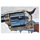 391R. Cimarron – Mod. Single Action Army – 45 Colt Cal. Single Action Revolver – w/4¾” Barrel w/Blade Front Sight and Notch Rear Sight – Fire Blue Finish w/Case Hardened Frame – w/Smooth Wood Grips