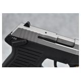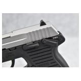 396R. Skyy Ind. – Mod. CPX-1 – 9mm Cal. Semi-Auto Pistol – w/3 1/8” Barrel w/3-Dot Sights – Stainless Finish – w/Black Polymer Grips and Frame – w/2 Factory Detachable Mags – w/Box, Manual, and Accessories