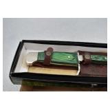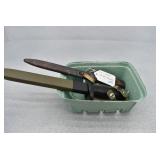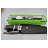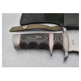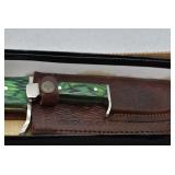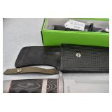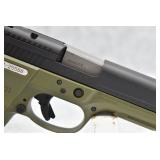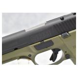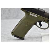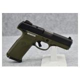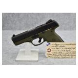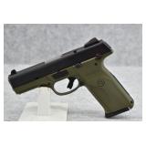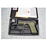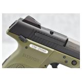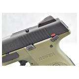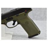 402R. Ruger – Mod. SR9 Stainless – 9mmx19 Cal. Semi-Auto Pistol – w/4” Barrel w/3-Dot Sights – Green/Black Two-Tone Finish – w/Checkered Green Polymer Frame – w/Two 17Rd Factory Detachable Mags – w/Factory Hard Case, Manuals, Laser Light – w/Clip-On Kabar Tactical Knife, and Accessories