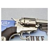 41. U.S. Pistol Co. – Mod. Spur Trigger – Patent 1878 – 22 Cal. Single Action Revolver – w/2¼” Octagon Barrel w/Sights – Nickel Finish – w/Checkered Black Plastic Birds Head Grips – Fully Functional