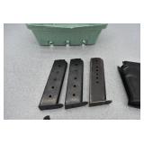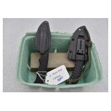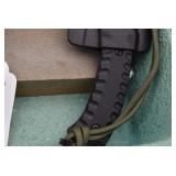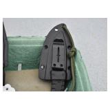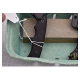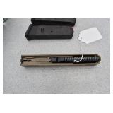 402R.     Ruger – Mod. SR9 Stainless – 9mmx19 Cal. Semi-Auto Pistol – w/4” Barrel w/3-Dot Sights – Green/Black Two-Tone Finish – w/Checkered Green Polymer Frame – w/Two 17Rd Factory Detachable Mags – w/Factory Hard Case, Manuals, Laser Light – w/Clip-On Kabar Tactical Knife, and Accessories