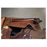 25R.       Cimarron – Mod. Wyatt Earp-Buntline – 45 Colt Single Action Revolver – w/10” Barrel w/Blade Front Sight and Notch Rear Sight – Blued/Case Hardened Finish – w/Smooth Wood Grips w/Wyatt Earp Badge on Right Side of Grip – As New