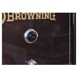 20R.       Browning – Mod. 42 Grade V Limited Edition – 410ga. 3” Slide Action Shotgun – 26” Vent Rib Barrel w/Bead Sight and Full Choke – Blued w/Gold Accents – w/Deluxe, Highly Figured Checkered Capped Pistol Grip Wood Stocks w/Factory Black Plastic Butt Plate – w/Highly Engraved Game Scenes on Both Sides of the Receiver w/Hunting Dog Scene on Left Side and Waterfowl Scene on Right Side – Animals are Gold Inlaid – New in Factory Box w/Manuals