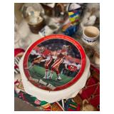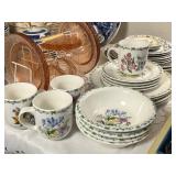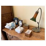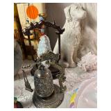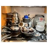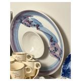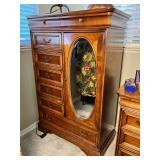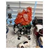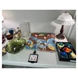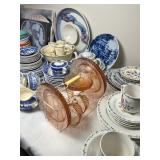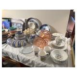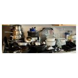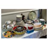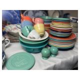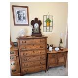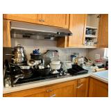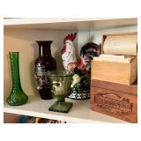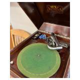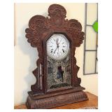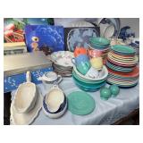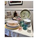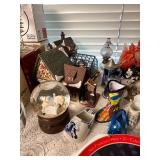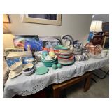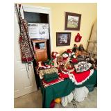 We got vintage and modern Christmas décor including an entire porcelain Christmas Village, Halloween and Thanksgiving figurines, Fiesta ware dish set, Thomson pottery “Floral Garden”, burgundy leather sofa and matching recliner chair, Victrola record player in wood cabinet, World Market dishware set, vintage Pyrex and Fire King, pots and pans, vintage coffee mugs, utensils, artwork, Kenmore sewing machine, antique dressers, antique Ingraham carved gingerbread mantle clock, small appliances, and more!