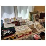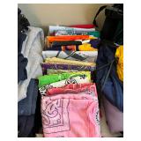 Vintage and antique linens, comforters, blankets, pillows, quilts, and Afghans, embroidered and needlework napkins, lace doilies, women’s shoes, clothing, single stitch tee shirts, sweatshirts, vintage 49er Starter (XL) jacket, handbags, hats, ski gloves, sunglasses, boots, hiking boots, Nike shoes, Uggs, jackets, bandanas, beanies, scarves, and coats.