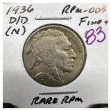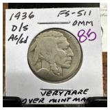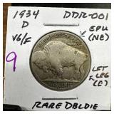 1934-D DDR-001 BUFFALO NICKEL DOUBLE DIE |