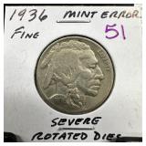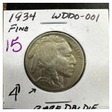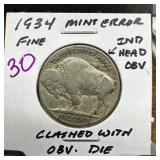 1934 BUFFALO NICKEL CLASHED W OBV DIE |