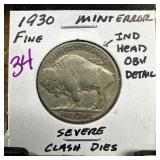 1930 BUFFALO NICKEL SEVERE DIE CLASH |