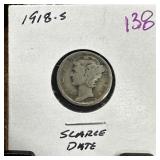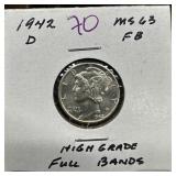 1943-D MERCURY SILVER DIME FULL BANDS |