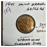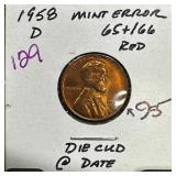 1956-D WHEAT PENNY CENT W PLANCHET CHIP |