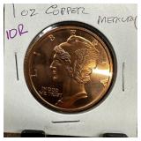 1 OZ COPPER BULLION ROUND MERCURY HEAD |