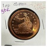 1 OZ COPPER BULLION ROUND TRADE DOLLAR |