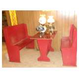Broyhill Bedroom Set which includes Dresser, Mirror, Chest & Four Poster Bed Pennsylvania House Drop Leaf Dining Table China Gold Flatware in Storage Chest Bar Stools & Wooden Booth Early American Drop Leaf Kitchen Table & Chairs Linens/Curtains/Valances Relegious Items Vintage Jewelry Lennox Bird Figurines Hammond Organ Early American Side Tables Beautiful Five Arm Cranberry Hobnail Glass Ceiling Fixture Craft Supplies Tools Vintage Patio Furniture Vintage Wall Clocks Bar Glasses Vintage Plastic Thermal Glasses Milk Glass & Much More