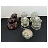 - Lot #12 - Antique McDermid Engraving Glass Paperweight & Vintage/Antique Insulators