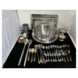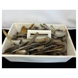 - Lot #64 - Flatware, Mixing Bowl, Utensils, Silver Plated Cream/Sugar, Mugs & More