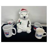 - Lot #61 - Coca-Cola Bear Cookie Jar & Vintage Pepsi Cola Mugs