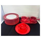 - Lot #54 - Red Mason Bowl/Plate, Royal Norfolk Plates, Temptations Presentables Ovenware & More
