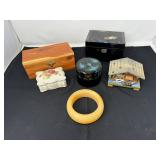 - Lot #128 - Nice Asian Music Jewelry Box, Black Lacquered Nesting Boxes, Small Cottage Music Box, Huge Marble Bracelet & More