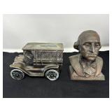 - Lot #179 - Vintage/Antique Peoples Bank Bust & Metal Coin Bank Car