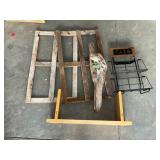- Lot #195 - Wood Shelf, Driftwood, Metal Tazo Rack & Wood Frames