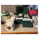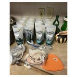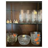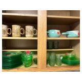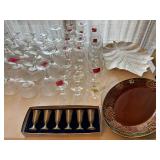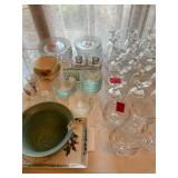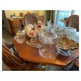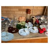 Glassware & China: Midcentury party/luncheon dish sets, Crystal, Vintage Iroquois Coffee Pot by Ben Seibel, Hall Craft Tea Pot by Eva Zeisel, Russel Wright China, Vintage EasualChina Tea Pot by Russel Wright, Crystal candle holders, Hall & Hull items, Stem ware, Vintage frosted Michigan drinking glasses and more….