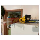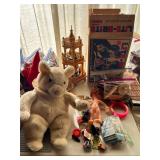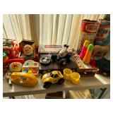Toys: Playschool, Motorized tinker toys, Vintage play table, Halsom square American log set, Lincoln logs, Blocks, Brightlight, Legos, Sesame Street, Partial Gilbert Erector auto radar scope set, Puzzles, Games, Vintage Tonka Trucks