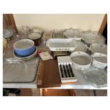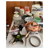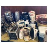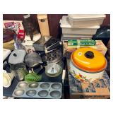 Kitchen Appliances & Kitchen Items: Roriss-Kaboob A 311, George Forman grill, Hamelton Beach toaster, Oster Meat & Food slicer, Sunbeam LeCraft food processer, Rival Crock pot, Mr Coffee, Sun Beam Steam iron, Black & Decker steam iron, Ice O Mate ice crusher, Black & Decker lid off, Oster air fryer, Farber ware coffer maker, Oster knife sharpener, Oster blender,Pyrex, Corning ware, Farber ware, Pots & Pans, Service ware & utensils, Baking items, Cutco steak knives, Tupperware, Rubbermaid, and more….