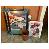 Furniture: Vintage Midcentury Sofa, Oak dining table w/2 leaves and 4 chairs on casters, Midcentury Oak 6 drawer dresser, Matching Mirror, Matching Oak 6 drawer dresser, Midcentury Oak entry table, Upholstered Chairs, Upholstered swivel rocker chairs, Vintage Oak trimmed tufted chairs, Midcentury Plaid Sectional sofa with matching ottoman,Midcentury Oak dropleaf dining table w/ 2 leaves and 6 chairs, Upholstered recliners, Oak coffee tables, Oak lamp tables, Bed w/ mattress & box springs, Wood breakfast table w/ 2 chairs, Oak TV Entertainment unit, TV Unit, Floor lamps, Oak Table lamps, Oak side tables, Wall art & mirrors, Wooden serving cart w/ butcher block top on casters, Vintage childs rocking chair, Pool table w/ accessories, and so much more…