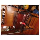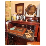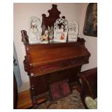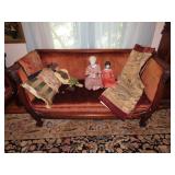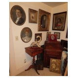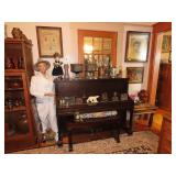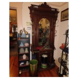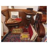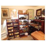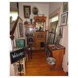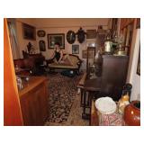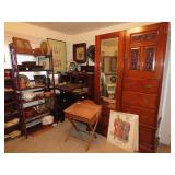 Superb and unique antique furniture including historic John Jelliff Parlor set, Renaissance Revival walnut Hall-tree, Mid Century Bamboo chairs, Oak side by side secretary bookcase, oak period wheelchair, children's furniture, 12' harvest table, and more.