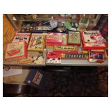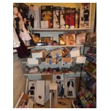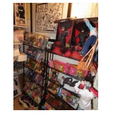 Children’s collection including salesman samples/ child furniture, books, pop-ups, dolls, toys, blocks, highchair, portable bed, *Major board and other game collection, Large “Gene” doll collection.
