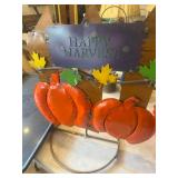YARD ART* Large Aluminum Water Fountain, Tin Big Foot Silhouette, Deer, Moose, Elk, & Cowboys Tin Silhouettes, Metal Pumkin Yard Art, Clay Pumpkins and Jack o Lanterns, Tin Turkey Yard Figures, Resin Turkey, Turkey Cookie Jar, Chiminea, Pairs of Large Clay Pots, Assorted Large Clay Pots, Clay Frog Pots, Goat Pot, Swinging Baskets on Stands, Wrought Iron Basket Stands, Wire Garden Trellis’s, Wire Topiaries, Several Wire Baskets, Wire Deco Bird Cage, Fall Wreaths, Fall Signs, Halloween Décor, Thanksgiving Décor, Tin Pig, 30+ Seasonal Deco Flags, Large Blow Up Black Cat, 2 Large Pumpkin & Ghost Halloween Yard Deco, Mole Windmill, and More