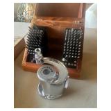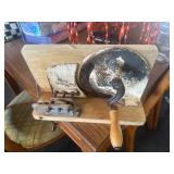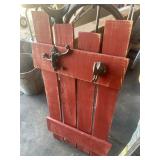 PRIMITIVES* Painted Wood Bucket, Vintage Snowshoes, Wood Lobster Trap, Wood Egg Crates, Wood Milk Crates, Wood Snow Sled, Large Oxen Yoke, Wood Single & Whiffle Trees, Wood & Metal Eveners, Wood Hames, Tobacco Cutters, Wood Spools, Quills, and Bobbins, Wooden Clothes Wringer, Assorted Block Pulleys, Barn Lanterns, Walking Sticks, Type Tray, Assorted Wood Tool Boxes/Chests, & More!