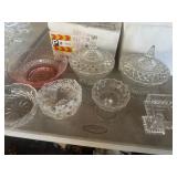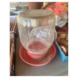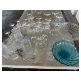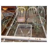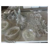 GLASS & POTTERY* Large Chiminea, pair Large Clay Pots, Clay Chicken Pot, Crock Jugs, Various Willow Pattern China, Various Crystal Wine, Saki, Sherry Stem Ware, Lead Crystal, Jars of Marbles, Milk Bottles, Chicken Fountain, Plaster Horse Egg Platter, Cake Stand, Stain Glass Window, Stain Glass Pcs., Cement Boot Planter, Cement Garden Statue, & more!