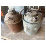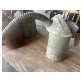 CAST IRON & TIN* Uncle Sam Cast Iron Mechanical Bank, Milk Cans, Cream Cans, Tin Sap Buckets, Galvanized Gas, Oil, and Kerosine Cans, Metal Spray Cans, Cast Iron Well Pump, Buckets, Assorted Sad Irons, Canning Pots, Enamel Pot, 3 assorted Gas Burners & Turkey Pots, Wire Milk Baskets, Egg Basket, Brass Torches, Lodge Skillet, Wagner Skilet, Cast Iron Dutch Oven, Cast Iron Pegasus, Bacon Press, Vintage Bread Pans, Sap Buckets, Larger Caldo & Tamale Pots, Le Creuset Cast Iron Pot, 2 Square Wash Tubs, Large Round Wash Tub, Wire Tea Cart, Metal Plate Racks, & More!