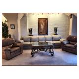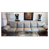 Delectable Home Décor and a view to match, this Double Condo will have something for everyone's flavor (Art Deco, Art Nouveau, Vintage, MCM, Contemporary & some Antique) There are vintage, Antique, Art Nouveau & new Clocks, a large assortment of Decorative Mirrors (all Sizes), Paintings, Lithographs, Serigraphs, (Lillian Shao & Erte) Prints & beautiful Wall Art, Tiffany Style Lamps & other Lighting, Wrought Iron Planters, lots of Bronze ?? Figures & Décor, fabulous Mid-Century Furniture Pieces by John Stuart including: (2) small Dressers, small Dresser, Desk, & Book Case, lots of Asian Décor & Furniture pieces, a 12ft. off white (Real) Leather Couch w/extra piece to convert to a Sectional, a matched Pair of Leather Reclining Chairs, (2) Marble Top Credenzas, a Modern Lacquered Desk, (4) Modern Chairs, a small Mahogany Chest w/Glass sides, a 52" stunning Round Kitchen / Dining Room Table & lots of other Furniture Accent Pieces, a Sewing Machine & some Sewing Notions, a vintage Lark Luggage Set, Antique & Collectible Dolls, a large (Anemone) Arabia Finland Dinnerware Set, a small Art Deco China Set, Flatware, Stemware, & other Kitchen & Household Bric-a-Brac, Women's Clothing (Sz. M - L), Shoes, Handbags & Accessories, some Sterling & Costume Jewelry, (2 ) Stained Glass Window Panels and so much more...