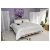 SOLD Metal tree (patio) SOLD Cream book cases SOLD Tufted, upholstered bed set