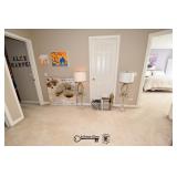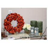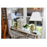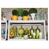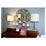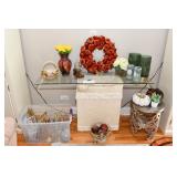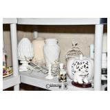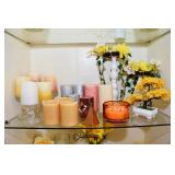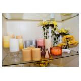 Lots of flameless battery candles Candle holders Tons of lamps and pairs of lamps Art Mirrors Oversized wall clock Resin art, bowls, vases, clocks, decor Frames and easels