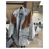 SIZE MEDIUM LEATHER FRINGED DENIM JACKET |