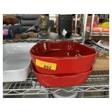 2 PIECE LARGE RED CASSEROLE DISHES |