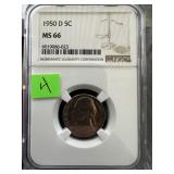 1950-D MS66 NGC GRADED JEFFERSON NICKEL |