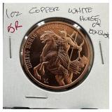 1 OZ COPPER BULLION ROUND WHITE HORSE OF CONQUEST |