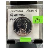 JAMES MONROE PLATINUM PLATED PROOF COIN |