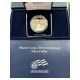 MARINE CORPS 230TH ANN PROOF SILVER DOLLAR |