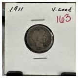 1911 BARBER SILVER QUARTER |