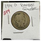 1914-D BARBER SILVER QUARTER |