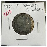 1909 BARBER SILVER QUARTER |