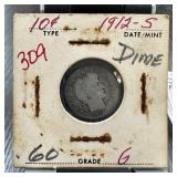 1912 BARBER SILVER DIME |