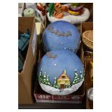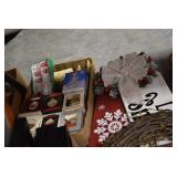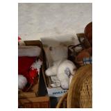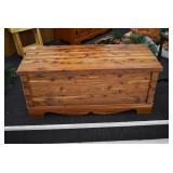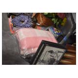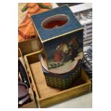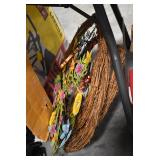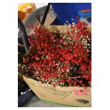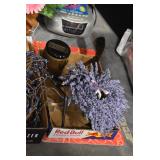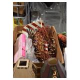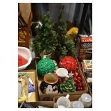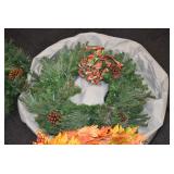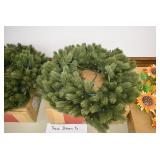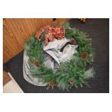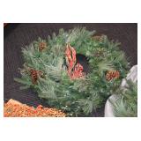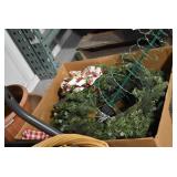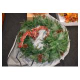 Modern and Antique Furniture: Cedar Blanket Chest, Stools, Various Chairs and End Stands, Chest of Drawers, Kitchen Hutch, Wreaths and Garland, and Other