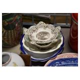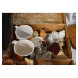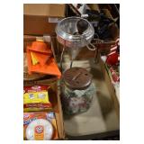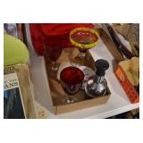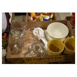Antique Glassware: 15 Pieces of Carnival Glass, Peanut Butter Glasses, Dated Blue Jar, Old Bottles, Corningware, and Other